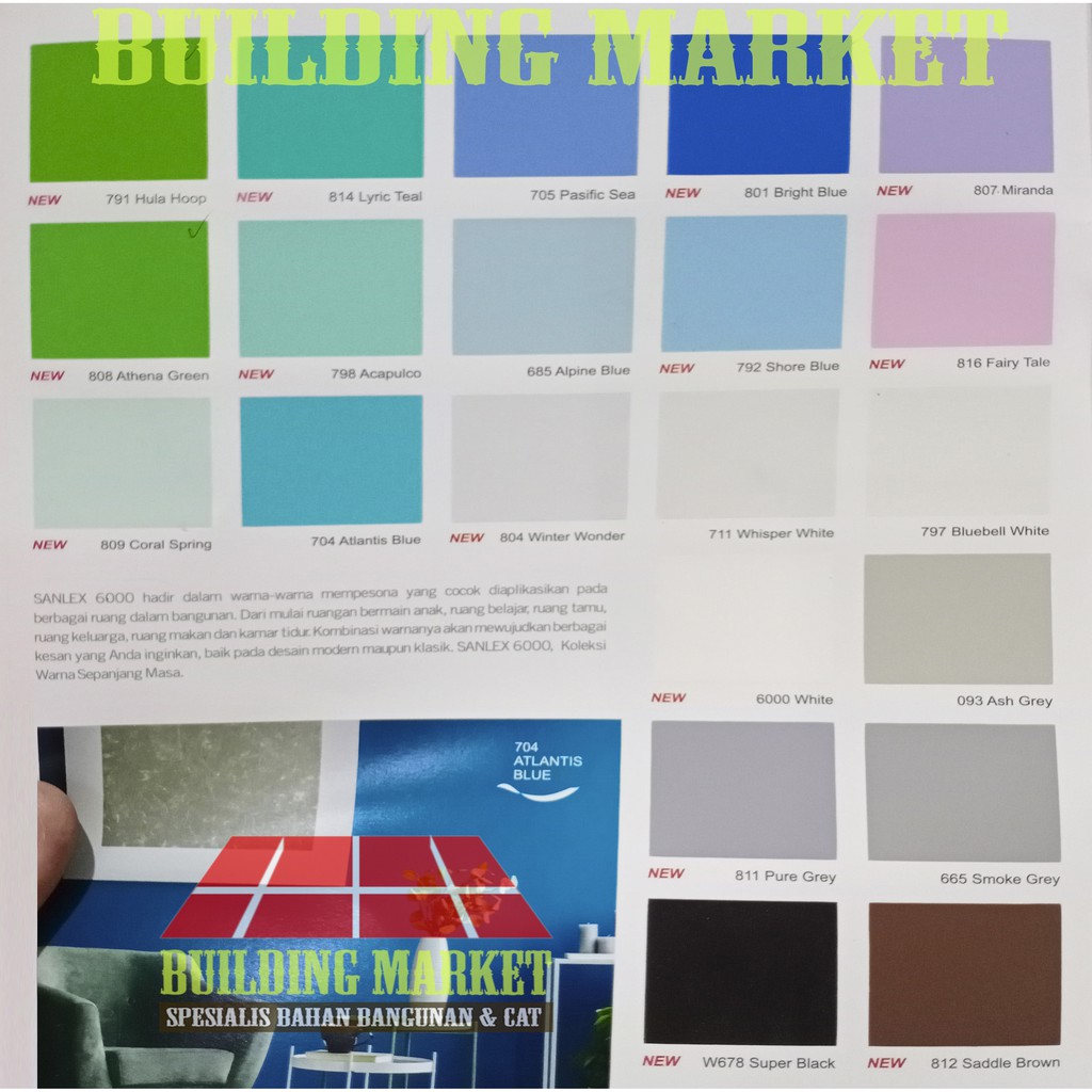 Cat tembok kualitas tinggi sanlex 6000 edupaint com untuk produk cat tembok yang bisa anda pilih yaitu sanlex 6000 cat tembok acrylic emulsion berkualitas tinggi yang cocok untuk pengecatan interior dan eksterior. Cat tembok sanlex 6000 cat tembok berwarna lembut sumber : Katalog warna dan harga cat tembok avitex 2019 harga sumber : Jual katalog warna cat spies hecker buku harga murah sumber www.pricearea.com. Jual sanlex 6000 cat tembok warna putih hitam 1 kg beli sanlex 6000 cat tembok warna putih hitam 1 kg jabodetabek jabar murah dengan harga murah rp40 700 di lapak soraya a rahman sorayaarahman2 bandung pengiriman cepat pembayaran 100 aman.